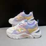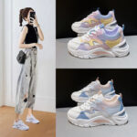 Available in pink purple, pink blue, and khaki, these sneakers combine style with functionality. The rubber sole provides excellent traction, while the front tie wearing style allows for a secure fit. The inside material is made of breathable mesh to enhance ventilation and prevent sweat buildup.