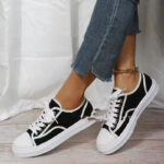 Crafted with high-quality canvas material, these sneakers are not only durable but also lightweight, providing you with a comfortable fit that lasts all day long. The flat platform design not only adds a trendy touch to your outfit but also offers an extra boost of height, giving you that confident stride.